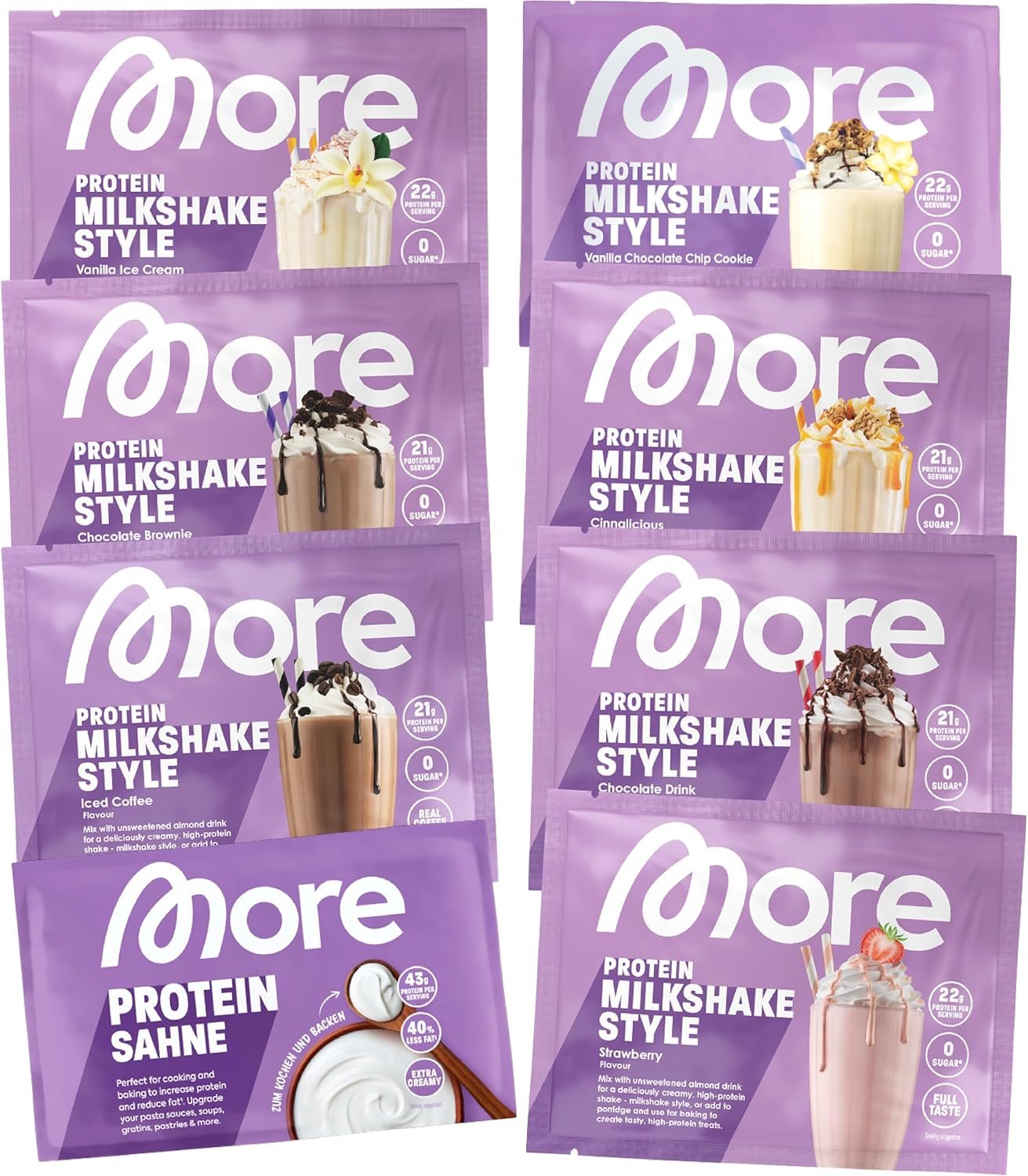 XXL Protein Box – MORE Nutrition – (Zerup, Clear Whey, Protein Iced Coffee, Protein Milkshake, Protein Sahne, Protein Grießpudding, Protein Pudding, Shaker)